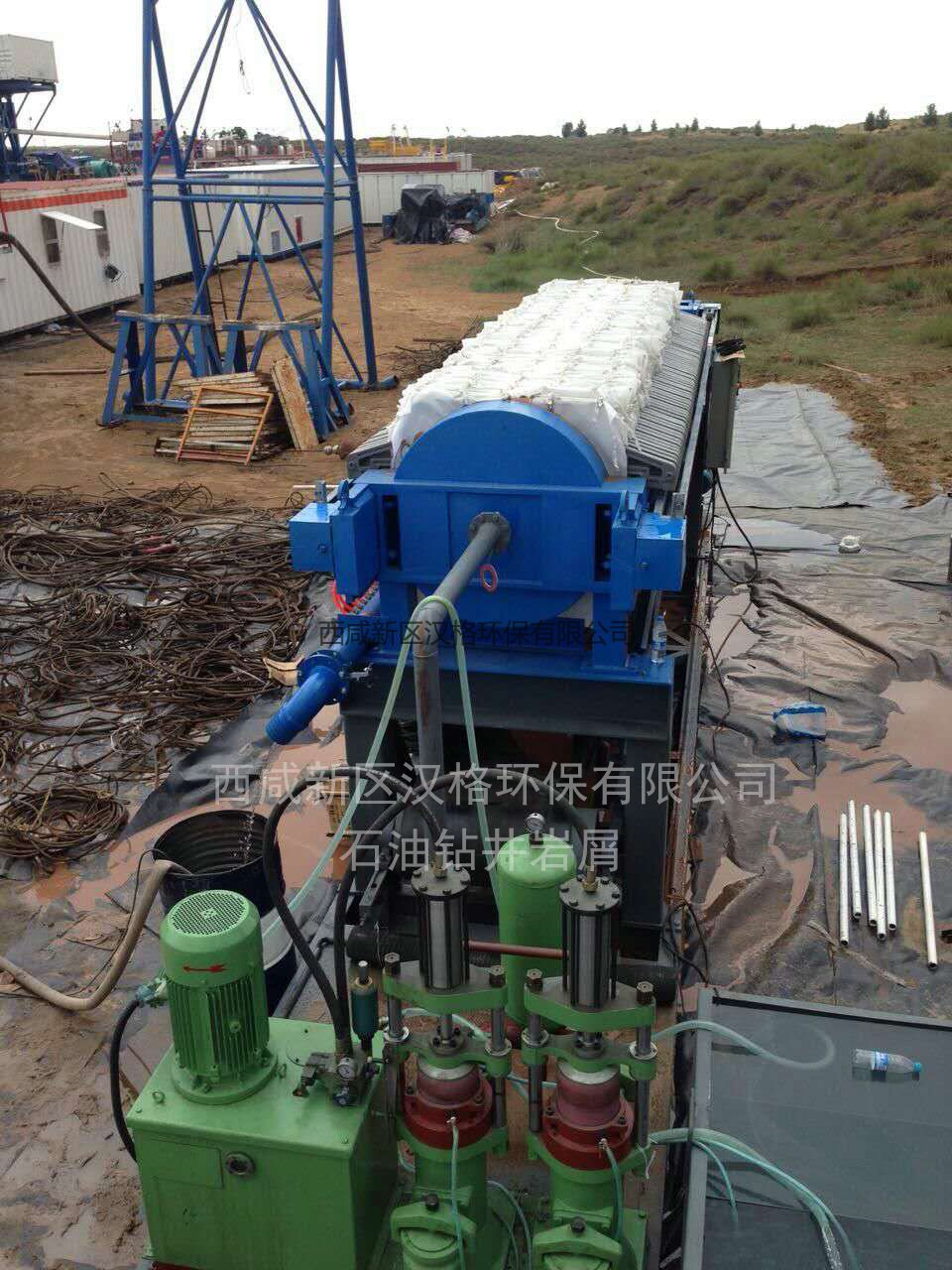運行情況:該項目使用YB250-30液壓柱塞泥漿泵5臺,XYZG300-125壓濾機5臺,日處理打樁污水污泥2000噸,打樁污水污泥經過振動篩過濾將5毫米以上碎石和雜質除掉,然后加藥沉淀,沉淀后污泥經過柱塞泥漿泵進入壓濾機過濾,過濾壓力10公斤經過30分鐘過濾,濾餅含水率達到20-25%左右,泥餅成型即可卸料。